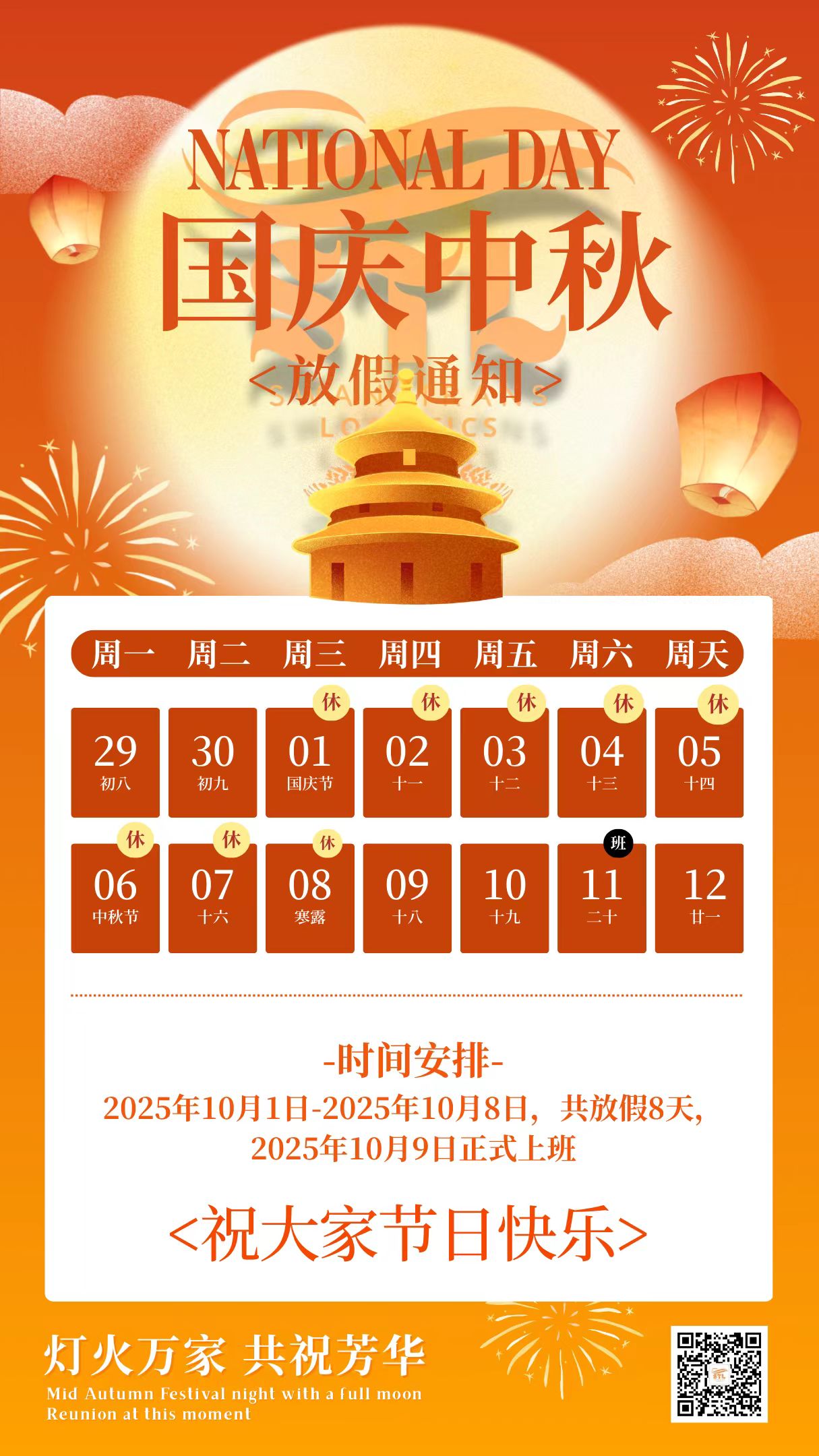 根据国庆及中秋节假期安排,我们的假期日期如下