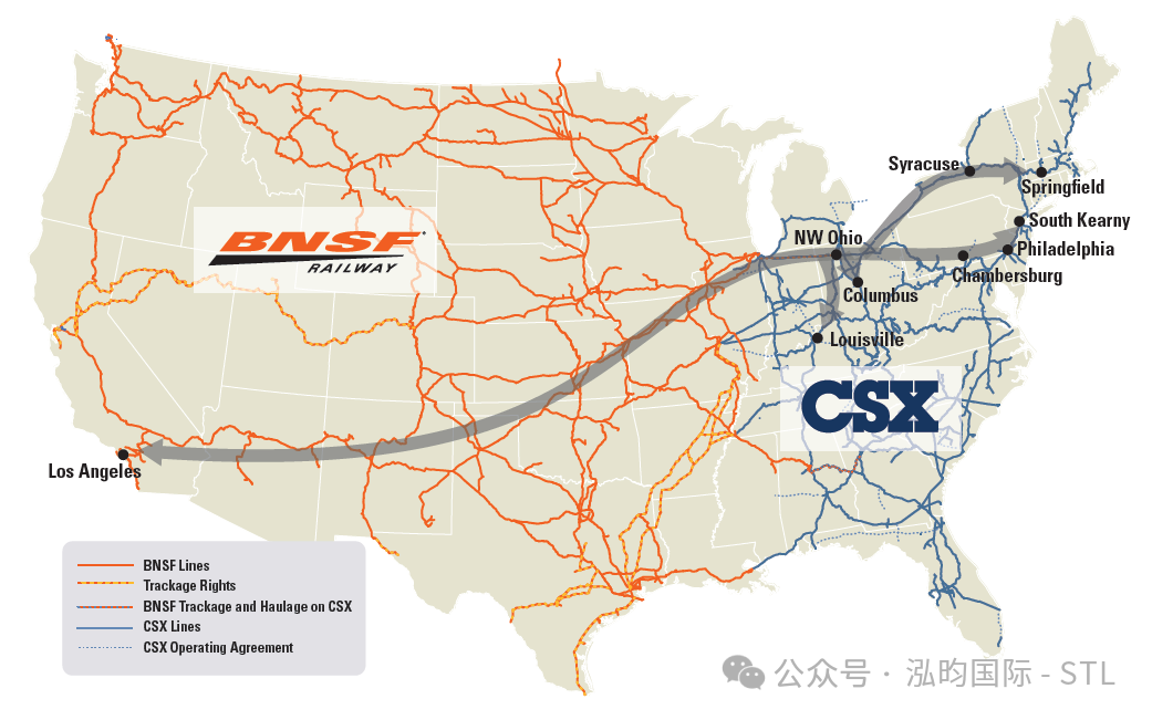 美国的北伯灵顿和圣塔菲铁路公司 ( BNSF ) 与 CSX 运输公司 (Chessie and Seaboard Transport) 联合宣布推出几项优化的多式联运时刻表,旨在为客户提供美国东西海岸之间无缝衔接且高效的货运解决方案。