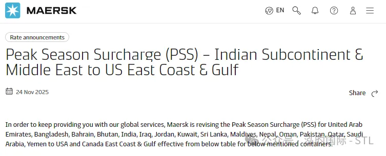 此次调整后的附加费适用于以下国家的货物:阿拉伯联合酋长国、孟加拉国、巴林、不丹、印度、伊拉克、约旦、科威特、斯里兰卡、马尔代夫、尼泊尔、阿曼、巴基斯坦、卡塔尔、沙特阿拉伯和也门。