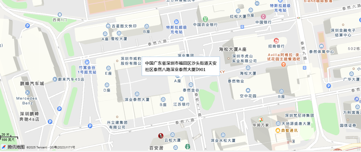 地址:中国广东省深圳市福田区沙头街道天安社区泰然八路深业泰然大厦D901